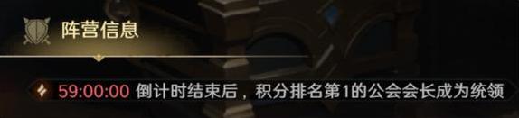 59:00:00 倒计时结束后,积分排名第一的公会会长成为统领