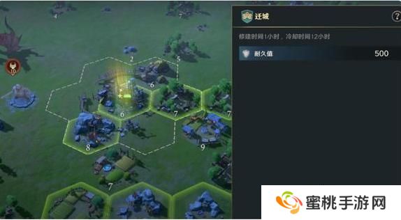 迁城之前,需要在领地上修建迁城地基(修建范围内不可以存在其它建筑、敌对资源地),修建完毕之后即可点击迁城,每次迁城都有12小时的冷却时间,可通过消耗流晶消除。