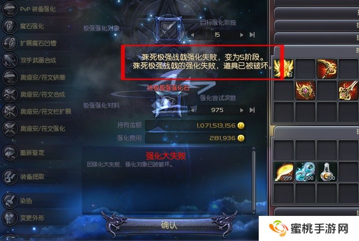 3、强化失败时,强化对象装备有一定概率被破坏。