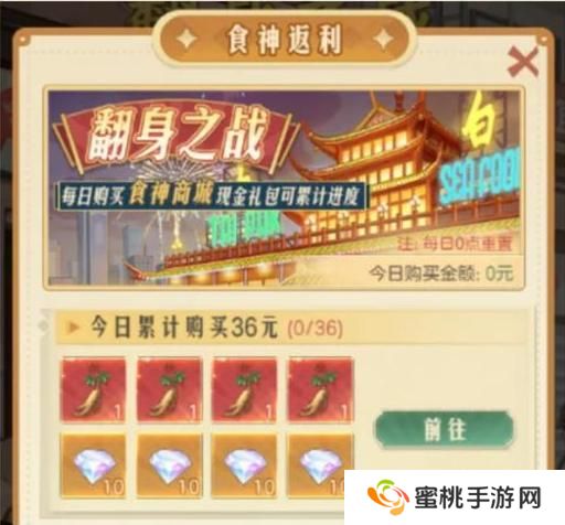 食神商城中购买的礼包不参与每日累充,但是这次多出来一个返利。就是每日在商城中购买的现金礼包,可以累计进度,达到一定额度,可额外领取一些道具。