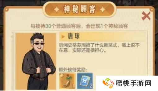 顾客分为普通顾客和神秘顾客,在右下方的图鉴中,可以看到都有哪些神秘顾客。在接待神秘顾客时,可以额外获得体力和奖励。每接待30个普通顾客后,会出现1个神秘顾客。