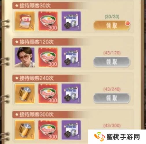 这里需要注意出现神秘顾客后,由于排队处始终有五人,所以还需要接待四次,大哥的接待奖励最好,可以额外获得四点体力。