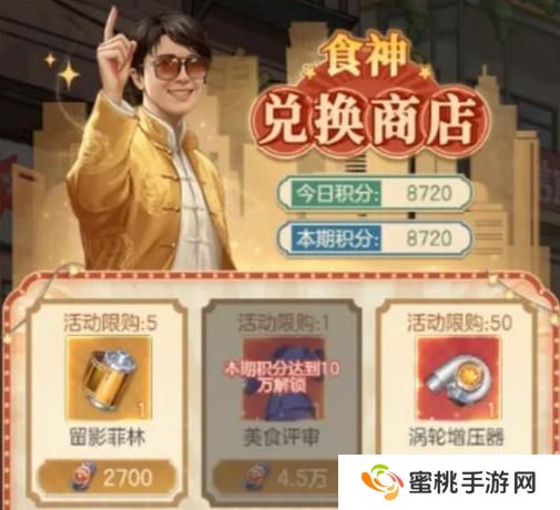 在兑换商店中,大奖是倪冬梅的美食评委服饰,本期积分达到10万解锁,兑换需要4.5万积分。倪冬梅获得这个服饰后,晋升为珍贵人才,可以增加挖矿次数,同时可以挖别人多个矿,性价比很高哟。