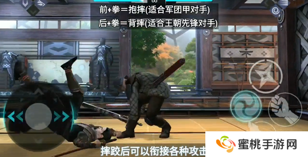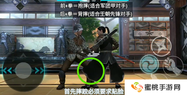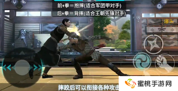 2、然后使用方向键+拳击的组合技打出摔跤的操作。