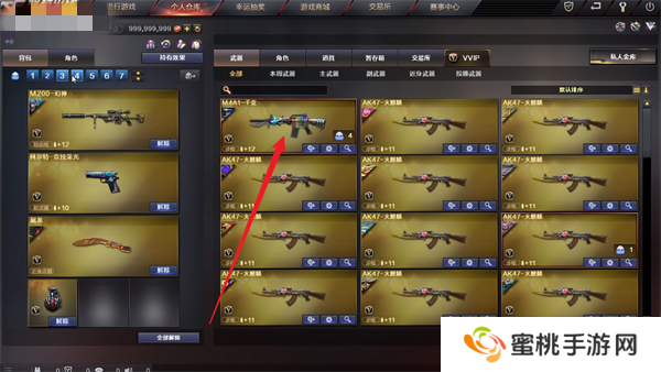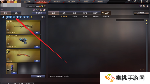2、在仓库当中点击自己想要进行更换的武器,就能够将其装备到自己的背包当中。