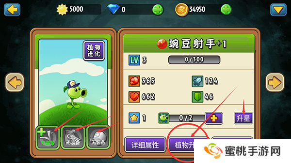 3、在植物信息界面中消耗资源点击植物升级提升植物的等级。