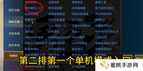2、这个时候会打开一个内置的菜单,测试工具模块里面会存在一个【单机模式入口】的选项,点击之后就可以进入到单机模式。