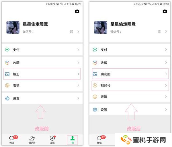 微信8.0版本手机版功能一、我的界面改版最明显的变化,就是微信右下角的【我】,可以看到【相册】被改成【朋友圈】,如果你创建过视频号,那么这里还会显示你的个人视频号入口。