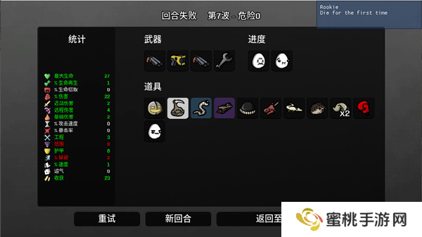 6、玩家们死亡之后,就会对你当局的表现进行一定的统计,你可以重新开始游戏。