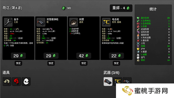 5、每一波的怪物结束之后,你还能够进入到商店之中,消耗自己的资金来购买装备武器。