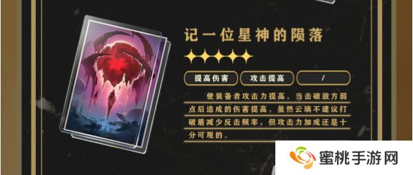 使装备者攻击力提高,当击破敌方弱点后造成的伤害提高,虽然云璃不建议打破盾减少反击频丰,但攻击力加成还是十分可观的。