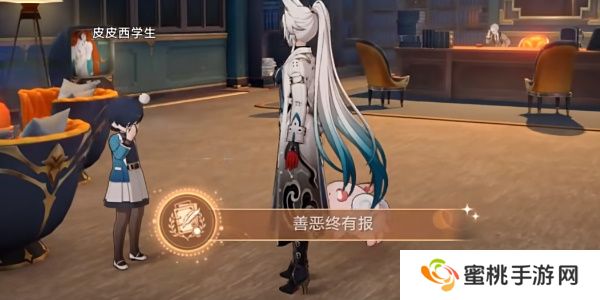 2、出锚点后我们进入校长室,在校长室中我们找到一个npc皮皮西学生,和她对话就可以解锁成就【善恶终有报】。