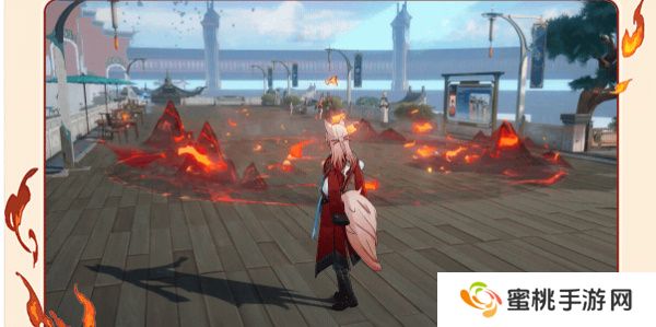 使用秘技后,制造1片持续一定时间的特殊领域。与处于特殊领域内的敌方进入战斗后,对敌方全体造成火属性伤害,并有一定概率施加1层【烬煨】。我方制造的领域效果最多存在1个。