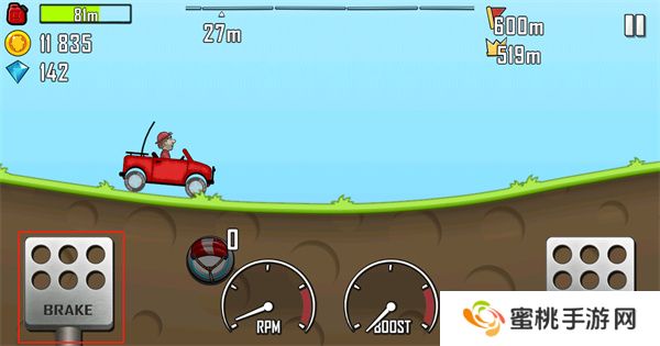 4、玩家们通过点击界面左下角的按钮进行刹车。
