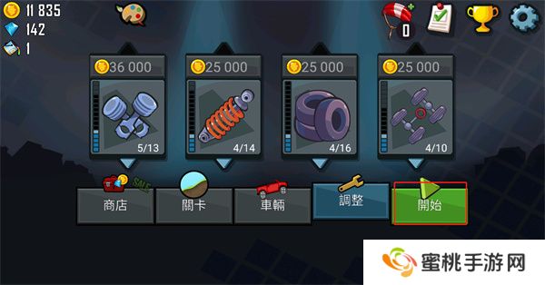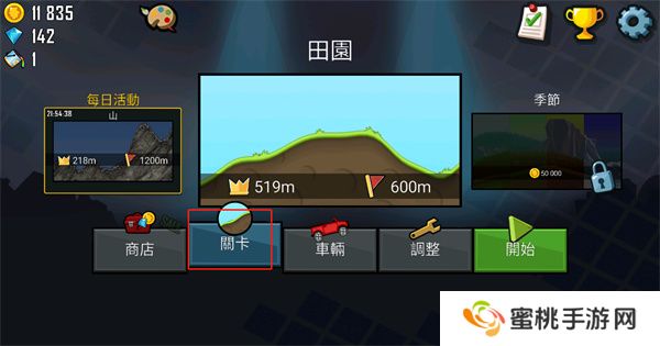 1、首先在本站中下载打开登山赛车手游,点击主界面的关卡选项。