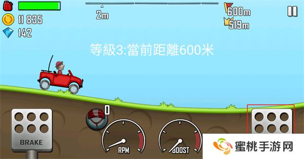 3、游戏中玩家需要通过点击游戏右下角的按钮来控制汽车进行前进。