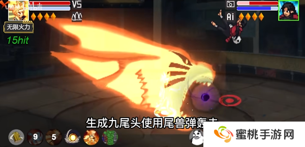 反弹接一技能,生成九尾头使用尾兽弹轰击。