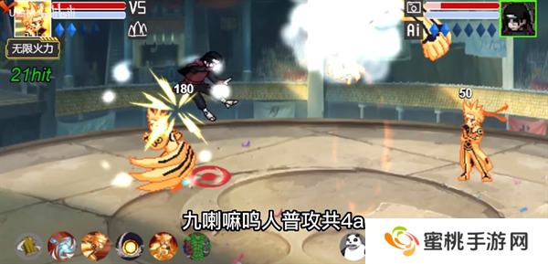 九喇嘛鸣人普攻共4a,前3a具有很长的位移,4a可以抓取敌方并扔出,还能通过摇杆换位,按住下方向留在原地,按住上方向会移动到空中。