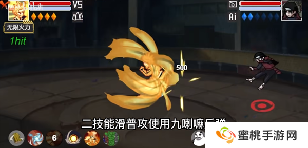 二技能滑普攻使用九喇嘛反弹,可以弹飞敌方或者敌方飞行物技能。