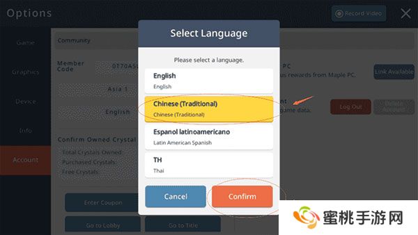 4、接着玩家们在弹出的界面中选择中文,在点击红色选项即可完成设置。