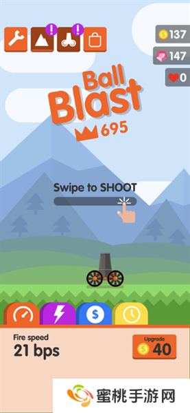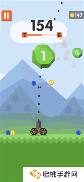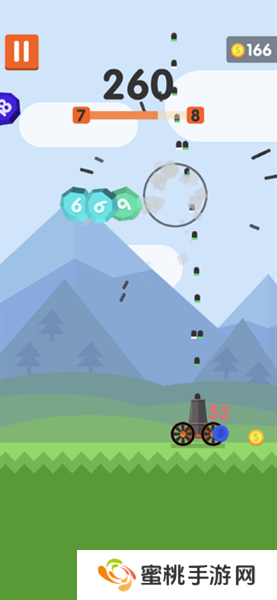 1.在关卡之中控制火炮的位置来对掉落的石头进行射击,击碎越多的石头所能够获取到的分数也越多。