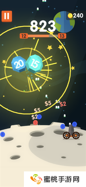 2、关卡之中你需要移动自己的跑车攻击下落的各种石块,石块上面的数字就是击碎所需要的攻击次数,玩家们应该根据实际的情况来选择合适的石块进行攻击。