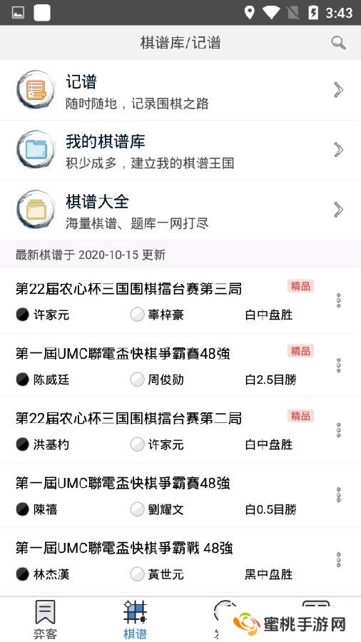 利用“弈客”可以实现个人棋谱库的管理,分享,同时弈客支持SGF导出。在弈客上棋友可以获取最新的围棋相关资讯,