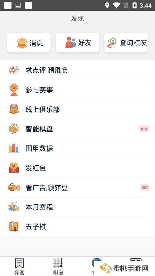 弈客围棋对弈大厅版,是一款可以对弈围棋并交友的软件。此版本中加入了更多有意思的功能,不仅可以学习各种围棋技巧,还能参加各种比赛,为用户赢得更多乐趣。棋友之间可以自主创建比赛,组织报名,进行智能赛事编排,成绩确认,展示等功能。