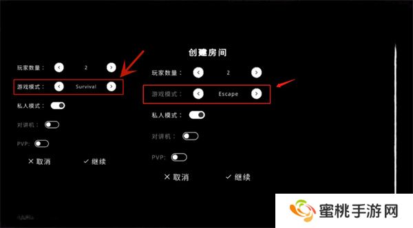6.游戏模式有两种,【Escape】是逃生模式,【Survival】是生存模式。