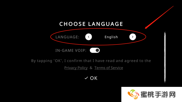 1、玩家们在首次进入游戏时的界面,点击【English】右边的按钮调设语言,点击切换。