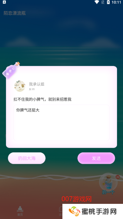 陌恋漂流瓶怎么用1、首先你需要在007游戏网进行下载安装陌恋漂流瓶,进入软件