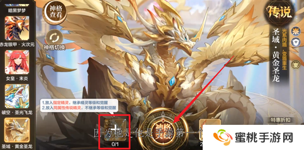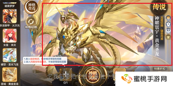 6、将自己的精灵放置到其中,消耗一定的材料,点击中间的神格突破就能够完成神曜进化。