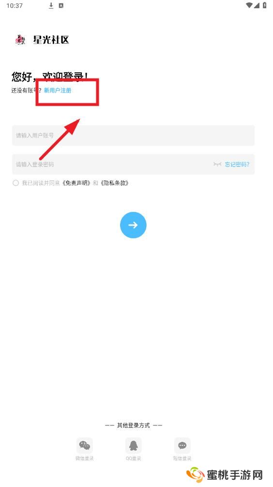 星光社区app怎么注册打开星光社区app,点击新用户注册