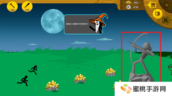 11、战斗主要的目标就是对方的弓箭手雕像,你需要在此期间与地方的**进行作战。