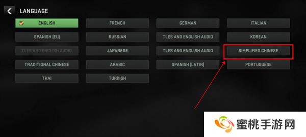 3.选择“SIMPLIFIED CHINESE(简体中文)”选项,点击选择简体中文。