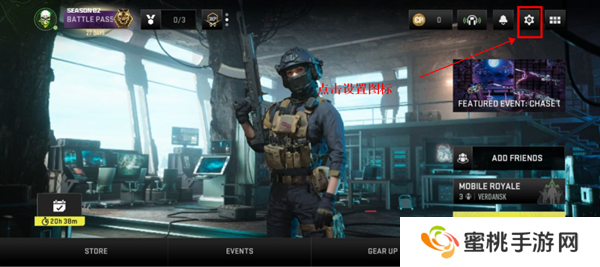 1.打开手游进入游戏主界面后,玩家们点击右上角设置图标。