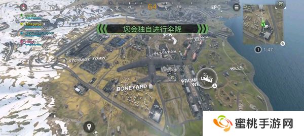 5、进入到游戏后,玩家们将会寻找合适的地点独自进行跳伞降落。