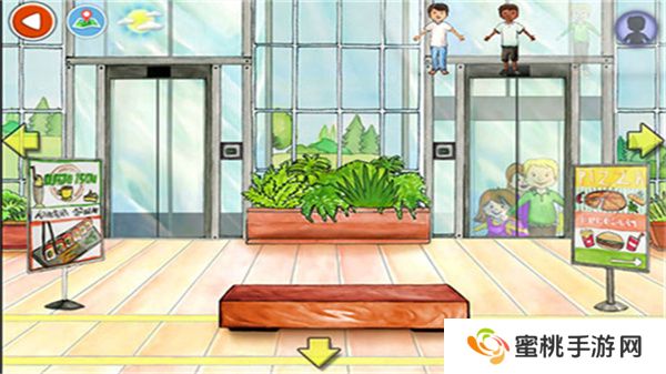 1、首先打开娃娃屋plus游戏,来到电梯口,玩家们点击按钮可以开门;