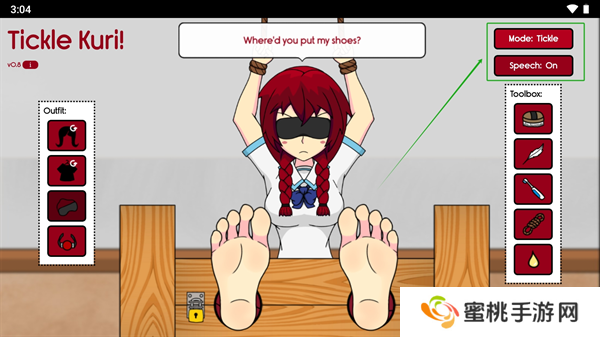 3、在右上角可以通过【mode】切换当前挠痒痒模式,分别是挠痒痒、调情模式,【speech】可以关闭游戏语音;