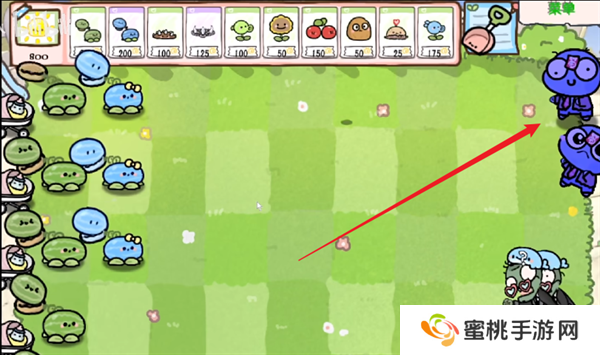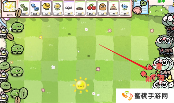 1、首先玩家们需要在关卡的场景当中进行西瓜投手的种植,以此才能够与僵尸之间进行作战。