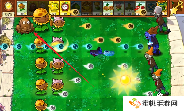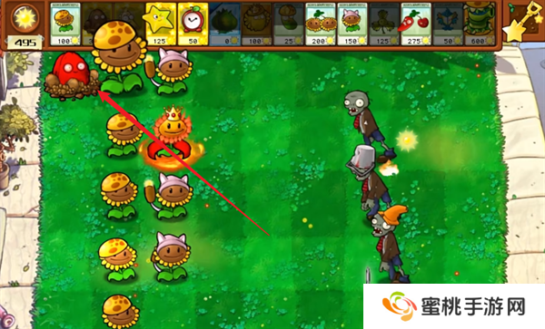 3.你可以种植各种不同的植物来进行作战,将关卡内部的所有僵尸敌人都击败之后就能够通过。