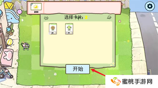 1、玩家们进入游戏之后,首先需要选择自己的植物卡牌,然后点击开始进行战斗。