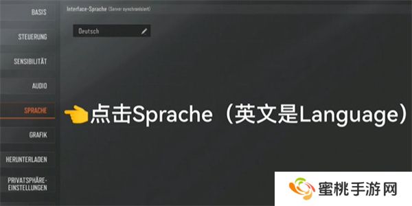 2、进入到设置页面后,找到左侧的语言选项,点击sparache【英文language】。