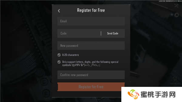 2、进入到注册界面后,玩家们在输入框中输入你的电子邮箱,获取验证码,登录密码点击免费注册;