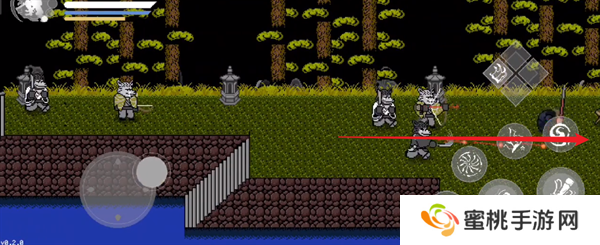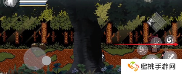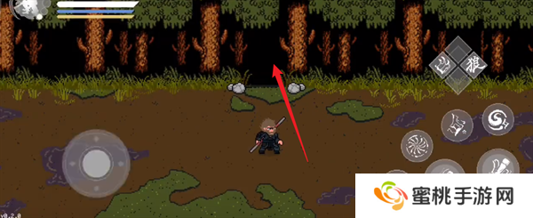 4、来到第四块地图之后,将其中的妖怪击杀,然后往上方两块石头中间的树里面进行移动。