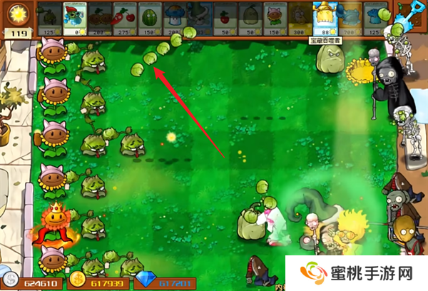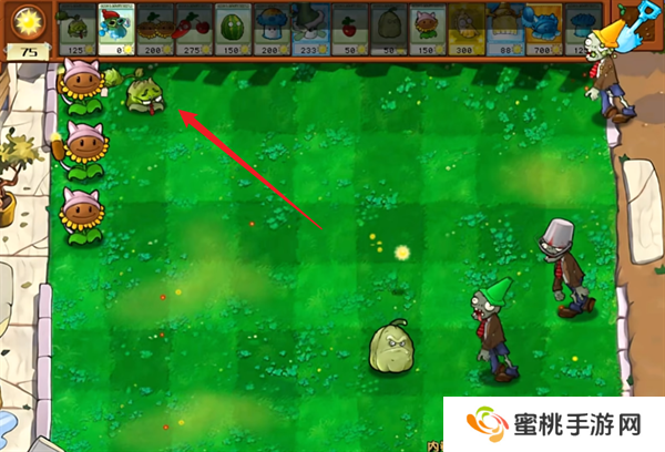 1、玩家们首先需要在场景当中种植内卷投手,他会周期性的投掷卷心菜来攻击僵尸。