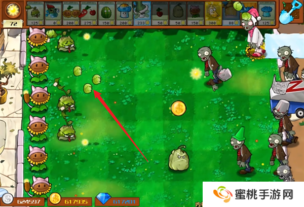 1.在关卡之中收集阳光种植植物抵御僵尸的攻击从而保护自己的家园。