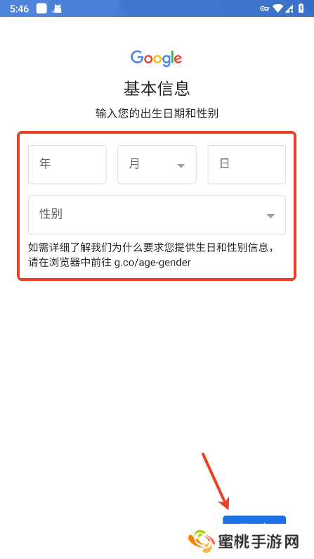 输入出生年月日和性别,点击“下一步”;