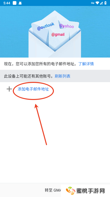 打开谷歌邮箱app之后,点击“添加电子邮件地址”;