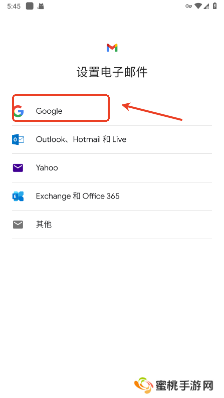 在设置电子邮件界面,点击“google”;